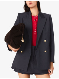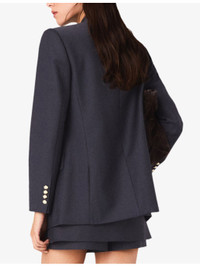 PRODUCT DETAILS - Maje stretch-woven blazer - 52% polyester, 43% wool, 5% elastane - Button fastening - Relaxed fit, double-breasted, peak lapels, long sleeves, buttoned cuffs, gold-toned buttons - Dry clean - True to size - Model is 5ft 10in/1.78m and wears a size UK 8 - Midweight, slight stretch Ref: R04509764