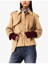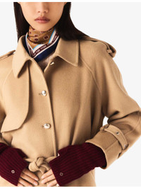 PRODUCT DETAILS - Maje wool-blend jacket - 78% wool, 22% polyamide; pocket lining 100% polyester - Button fastening at front - Classic collar, military style, shoulder plackets, long sleeves, two slanted welt pockets at front, adjustable belt tie at waist, gold-toned hardware - Dry clean - True to size - Midweight, non-stretch Ref: R04522391