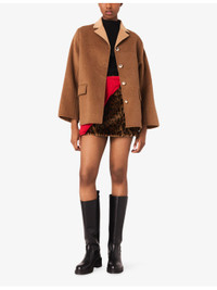 PRODUCT DETAILS - Maje wool-blend coat - 70% wool, 30% polyamide - Exposed button fastening at front - Regular fit, contrast collar, long sleeves, two pockets at the side, gold-tone hardware - Dry clean - True to size - Model is 5ft 10in/1.78m and wears a size UK 8 - Midweight, non-stretch Ref: R04514776