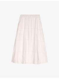 Elasticated-Waist Button-Down Embroidered Linen-Blend Midi Skirt