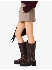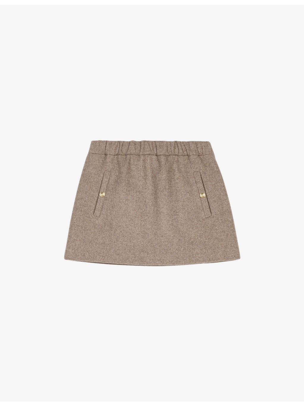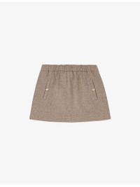 PRODUCT DETAILS - Maje wool-blend skirt - 55% wool, 39% polyester, 2% acrylic, 2% polyamide, 1% viscose, 1% cotton - Concealed zip fastening at side - Regular fit, elasticated waist, two pockets at the side, gold-tone hardware - Dry clean - True to size - Model is 5ft 11in/1.80m and wears a size UK 8 - Midweight, non-stretch Ref: R04514773