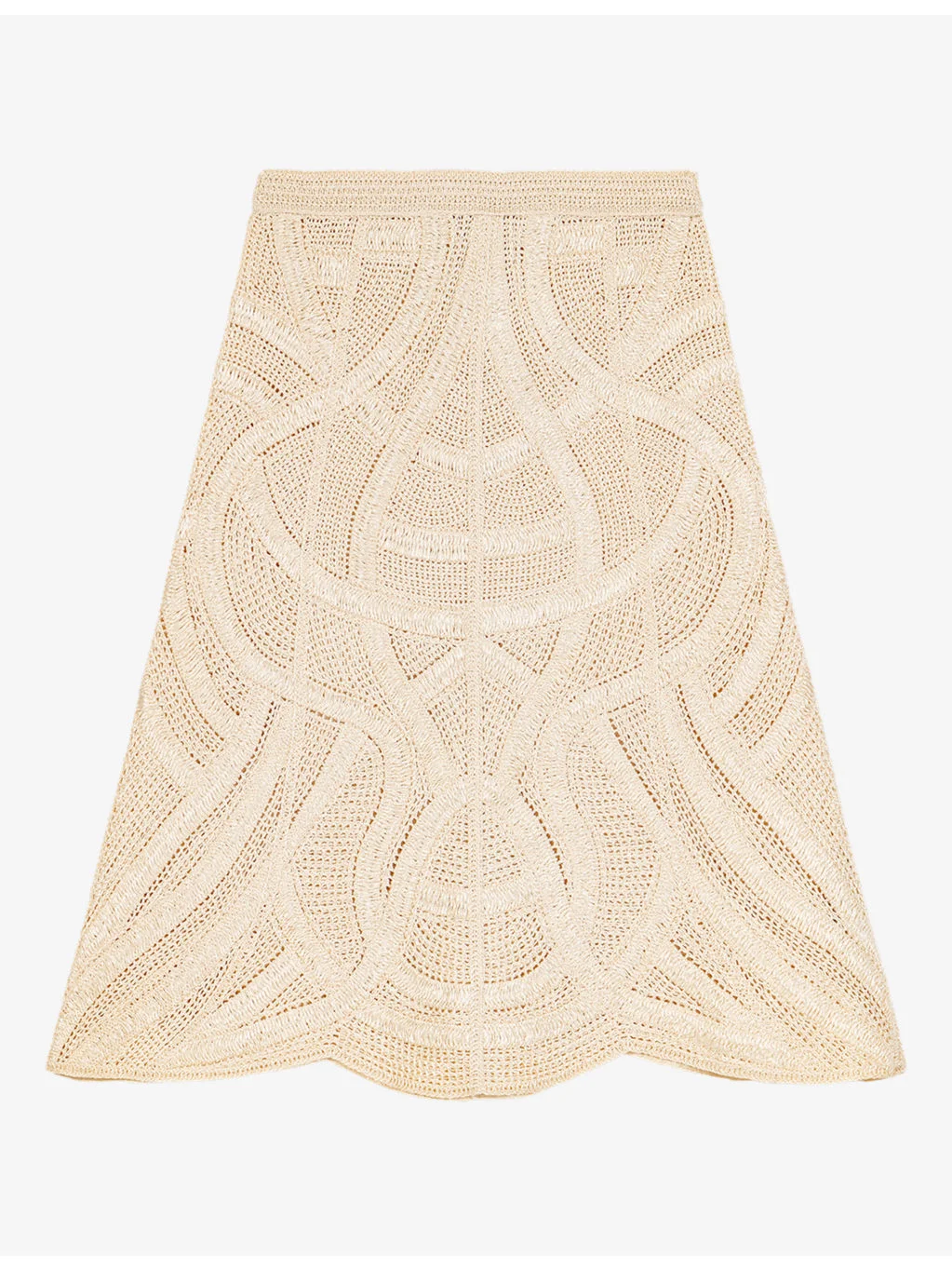 PRODUCT DETAILS - Maje crochet midi skirt - 100% polyester - Regular fit, mid-rise, elasticated waist, scalloped hem - Hand wash - True to size - Lightweight, non-stretch Ref: R04606245