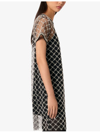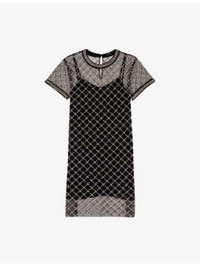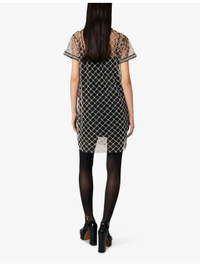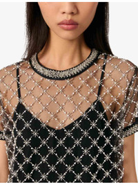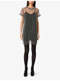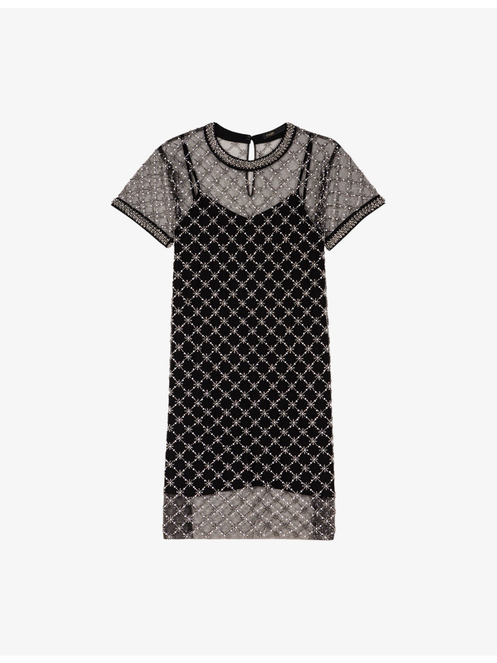 PRODUCT DETAILS - Maje tulle dress - 100% polyester - Exposed zip fastening at back - Regular fit, round neck, short sleeves, all-over embellishment, sheer body, removable lining slip - Machine wash at 30°C - True to size - Model is 5ft 9in/1.75m and wears a size UK 8 - Lightweight, non-stretch Ref: R04411189