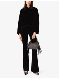 PRODUCT DETAILS - Maje stretch-velour trousers - 90% polyester, 10% elastane - Regular fit, elasticated waistband, flared legs - Machine wash at 30°C - True to size - Model is 5ft 10in/1.78m and wears a size UK 8 - Lightweight, slight stretch Ref: R04548771
