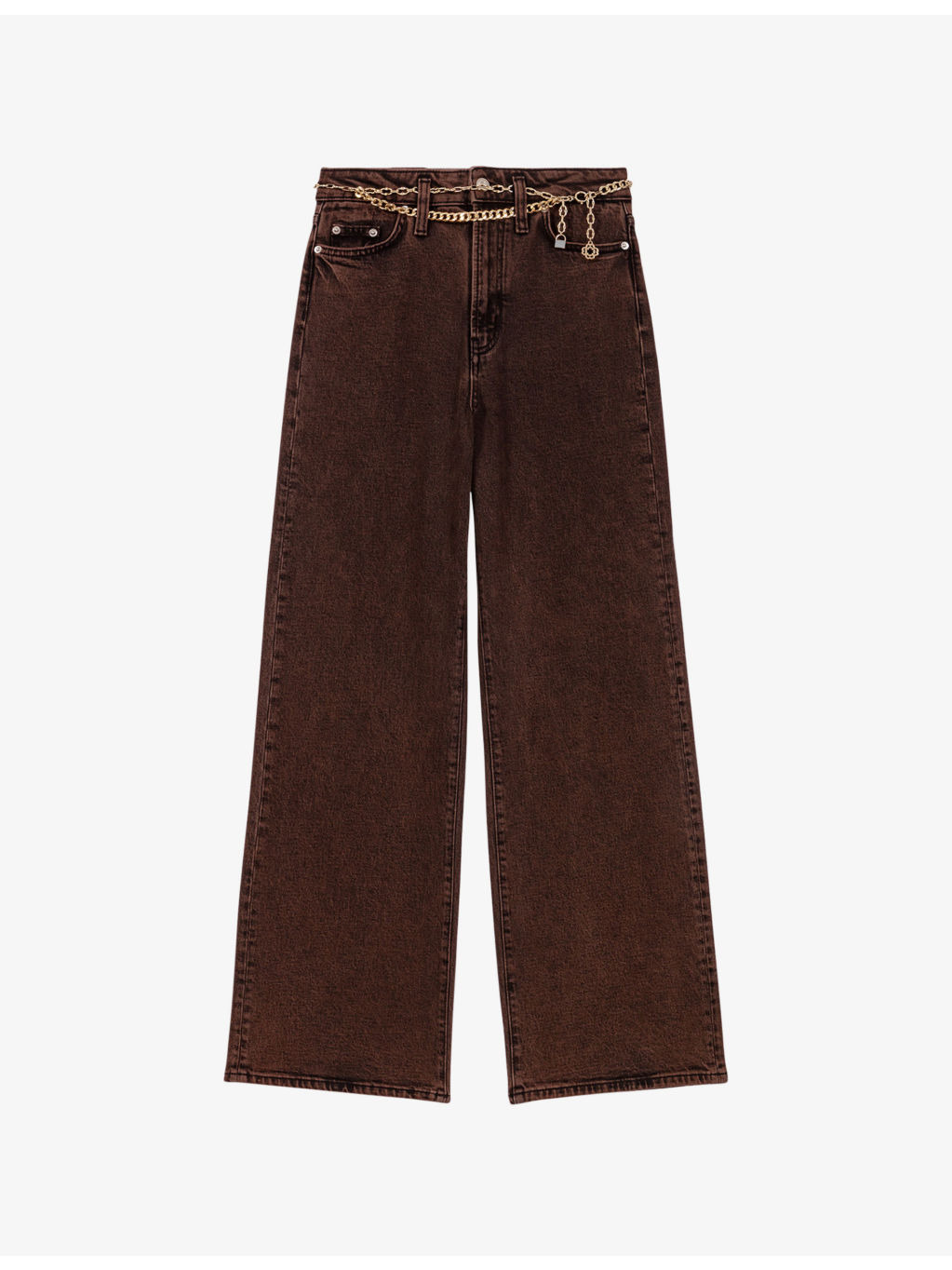 PRODUCT DETAILS - Maje stretch-denim jeans - 99% cotton 1% elastane - Button and zip-fly fastening - Regular fit, mid-rise, belt loops, five pockets, chain embellishment, flared leg - Machine wash at 30°C - True to size - Model is 5ft 9in/1.75m and wears a size UK 8 - Midweight, slight-stretch Ref: R04532824