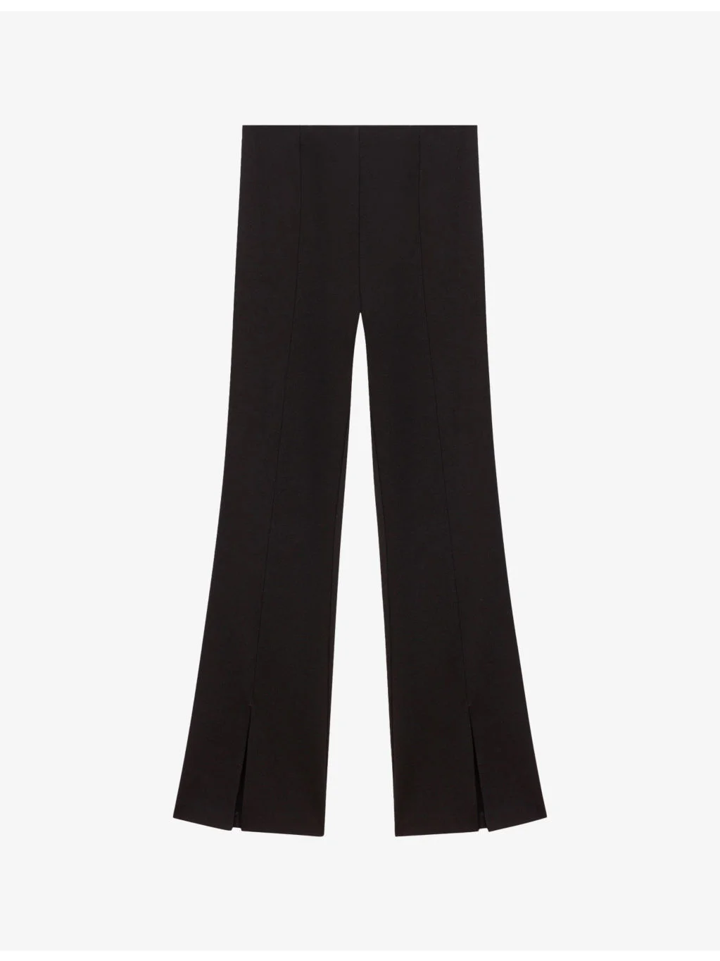 PRODUCT DETAILS - Maje woven trousers - 72% viscose, 22% polyester, 6% elastane - Zip fastening - Regular fit, mid-rise, flared leg, belt loops, side pockets, split hems - Dry clean - True to size - Model is 5ft 9in/1.75m and wears a size UK 8 - Lightweight, non-stretch Ref: R04598277