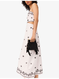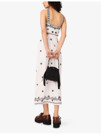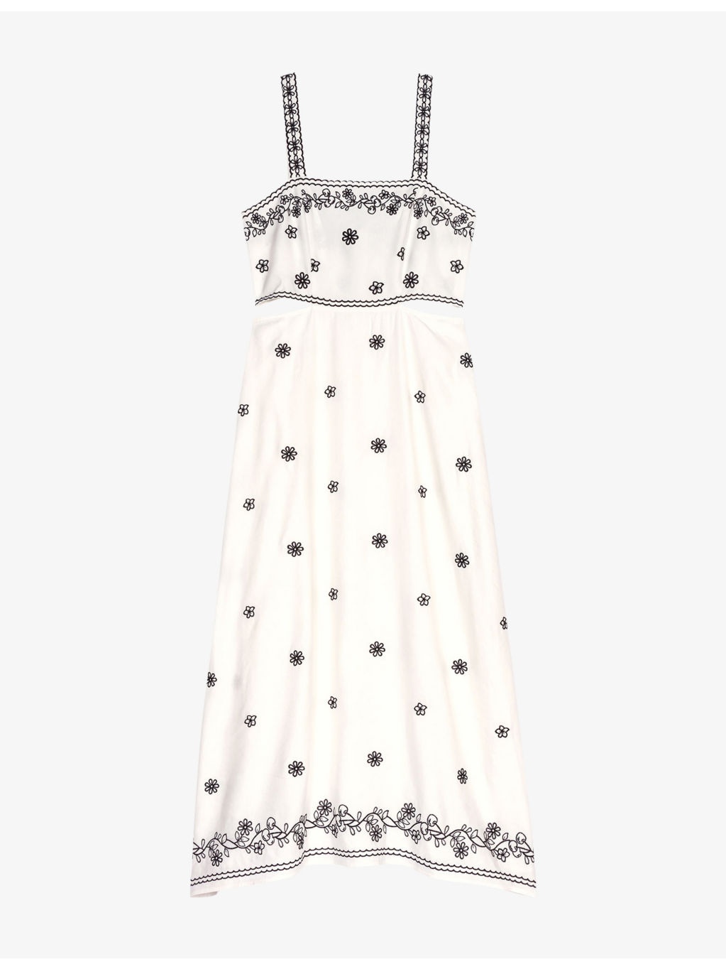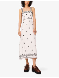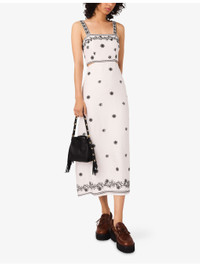 PRODUCT DETAILS - Maje linen-blend maxi dress - 55% linen, 45% viscose; embroidery 100% cotton; skirt lining 100% viscose; bias binding 100% cotton - Concealed zip fastening at back - Regular fit, straight-across neckline, sleeveless, wide shoulder straps, all-over floral embroidery, scalloped embroidery at trims, cut-out waist, flared skirt, lining at skirt, maxi length - Hand wash - True to size - Model is 5ft 9in/1.75m and wears a size UK 8 - Lightweight, non-stretch Ref: R04490304