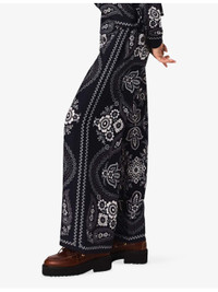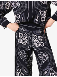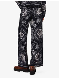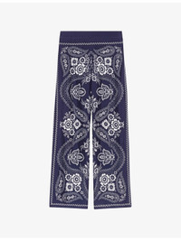 PRODUCT DETAILS - Maje satin trousers - 100% viscose - Slips on - Relaxed fit, high rise, elasticated-back waist, flowing silhouette, all-over bandanna paisley print - Machine wash at 30°C - True to size - Model is 5ft 10in/1.78m and wears a size UK 8 - Lightweight, non-stretch Ref: R04495410