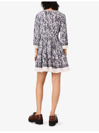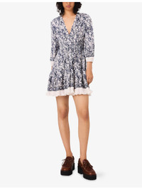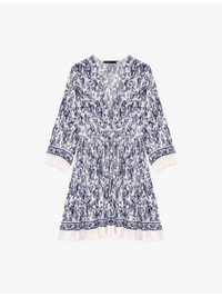 PRODUCT DETAILS - Maje woven dress - 100% polyester - Slips on - Regular fit, V-neck, three-quarter sleeves, elasticated waist, all-over fruit pattern - Hand wash - True to size - Model is 5ft 9in/1.75m and wears a size UK 8 - Lightweight, non-stretch Ref: R04491718