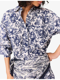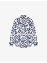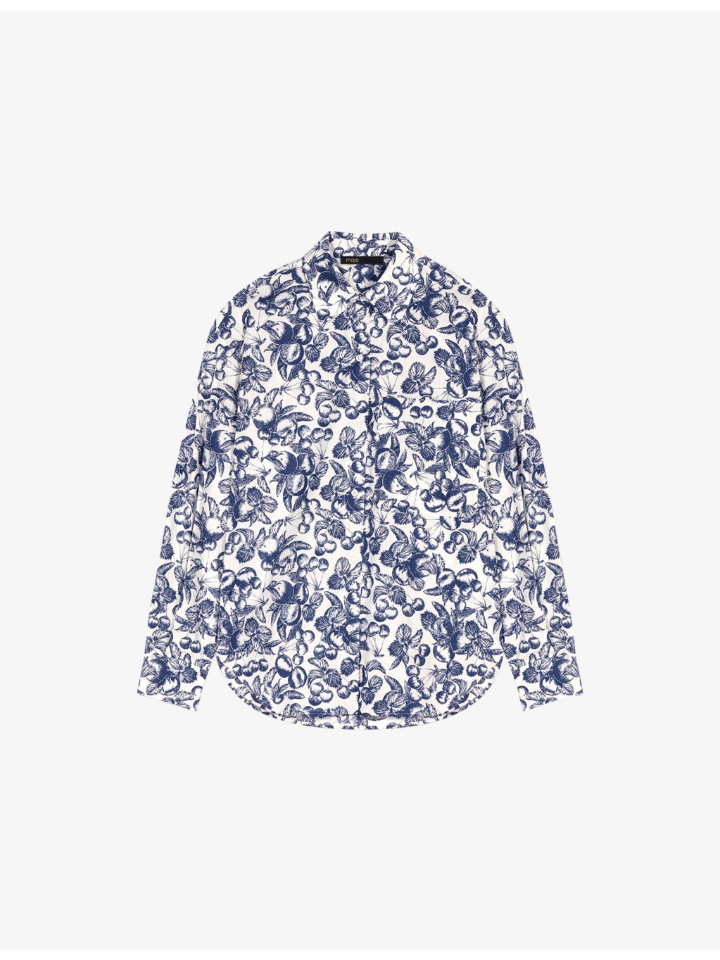 PRODUCT DETAILS - Maje cotton shirt - 100% cotton - Exposed button fastening at front - Regular fit, collared, long sleeves, all-over fruit patterned, longer hem at the back - Machine wash at 30°C - True to size - Model is 5ft 9in/1.75m and wears a size UK 8 - Lightweight, non-stretch Ref: R04490302
