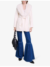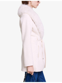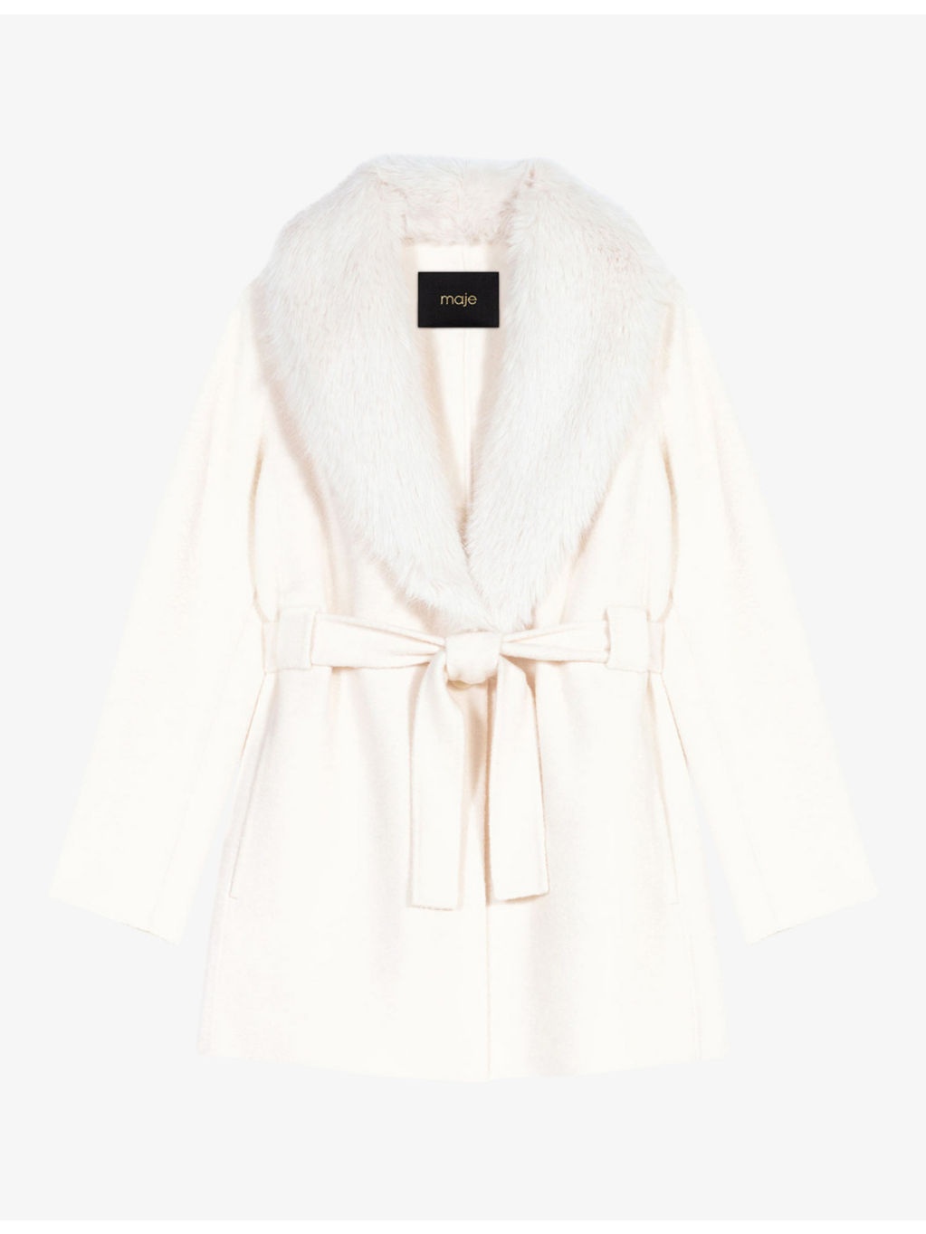 PRODUCT DETAILS - Maje wool-blend coat - 78% wool, 22% polyamide - Self-tie fastening at waist - Faux fur collar, long sleeves, removable belt at the waist, two pockets at the side - Dry clean - True to size - Model is 5ft 9in/1.75m and wears a size 1 - Heavyweight, non-stretch Ref: R04195971