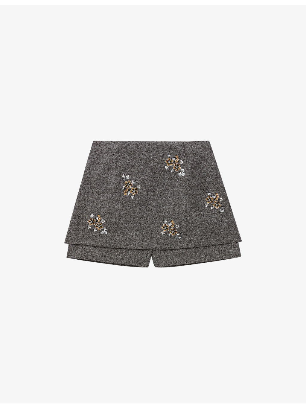 PRODUCT DETAILS - Maje woven shorts - 86% polyester, 14% viscose - Concealed fastening - Regular fit, all-over flower embroidery, wrap style, slightly flared cut - Dry clean - True to size - Model is 5ft 10in/1.78m and wears a size UK 8 - Midweight, non-stretch Ref: R04532903