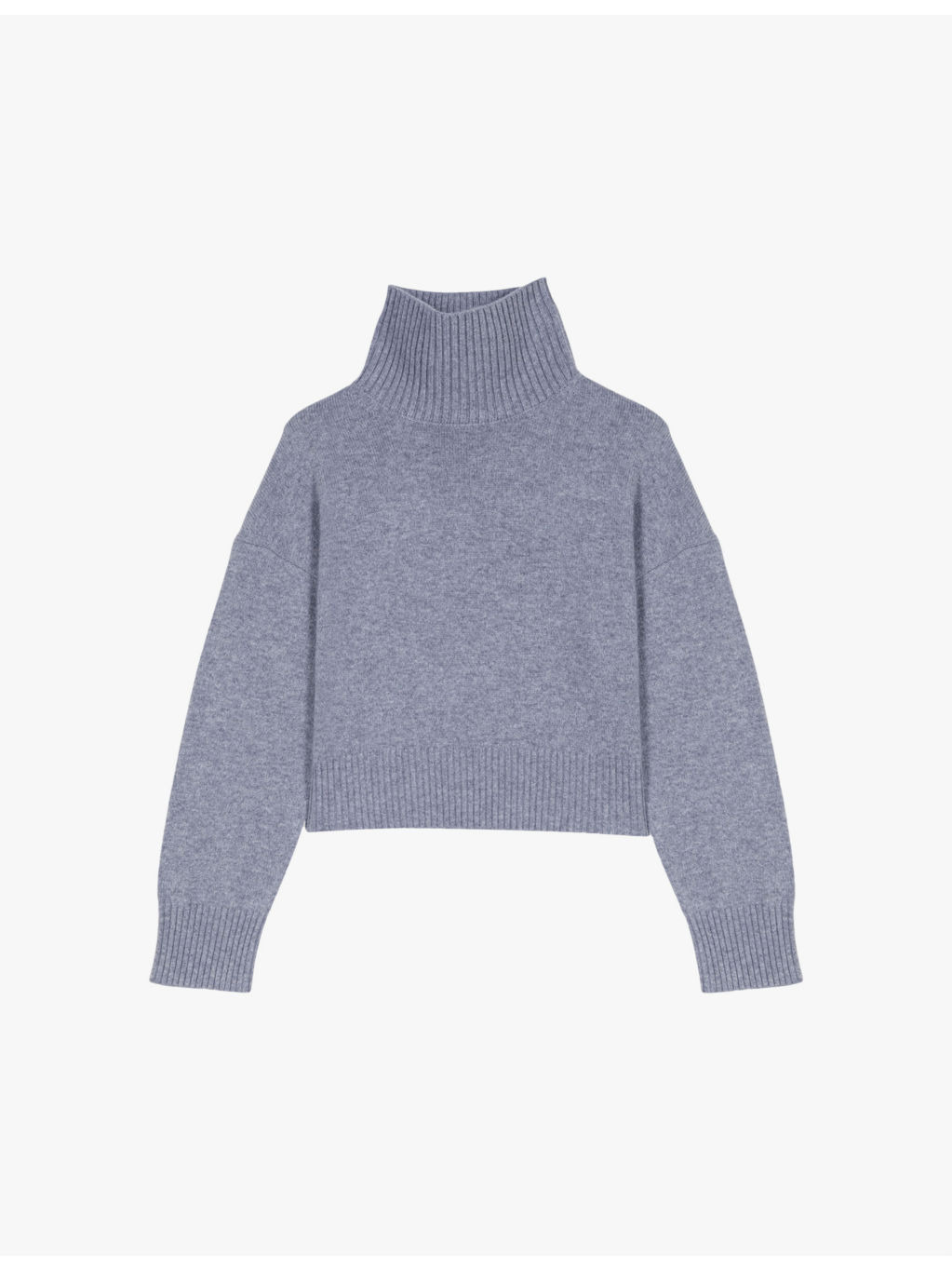 PRODUCT DETAILS - Maje stretch cashmere-blend jumper - 94% cashmere, 5% polyamide, 1% elastane - Slips on - Regular fit, high neck, long sleeves, ribbed trims, clover intarsia at back, cropped - Specialist dry clean - Midweight, slight stretch Ref: R04337672