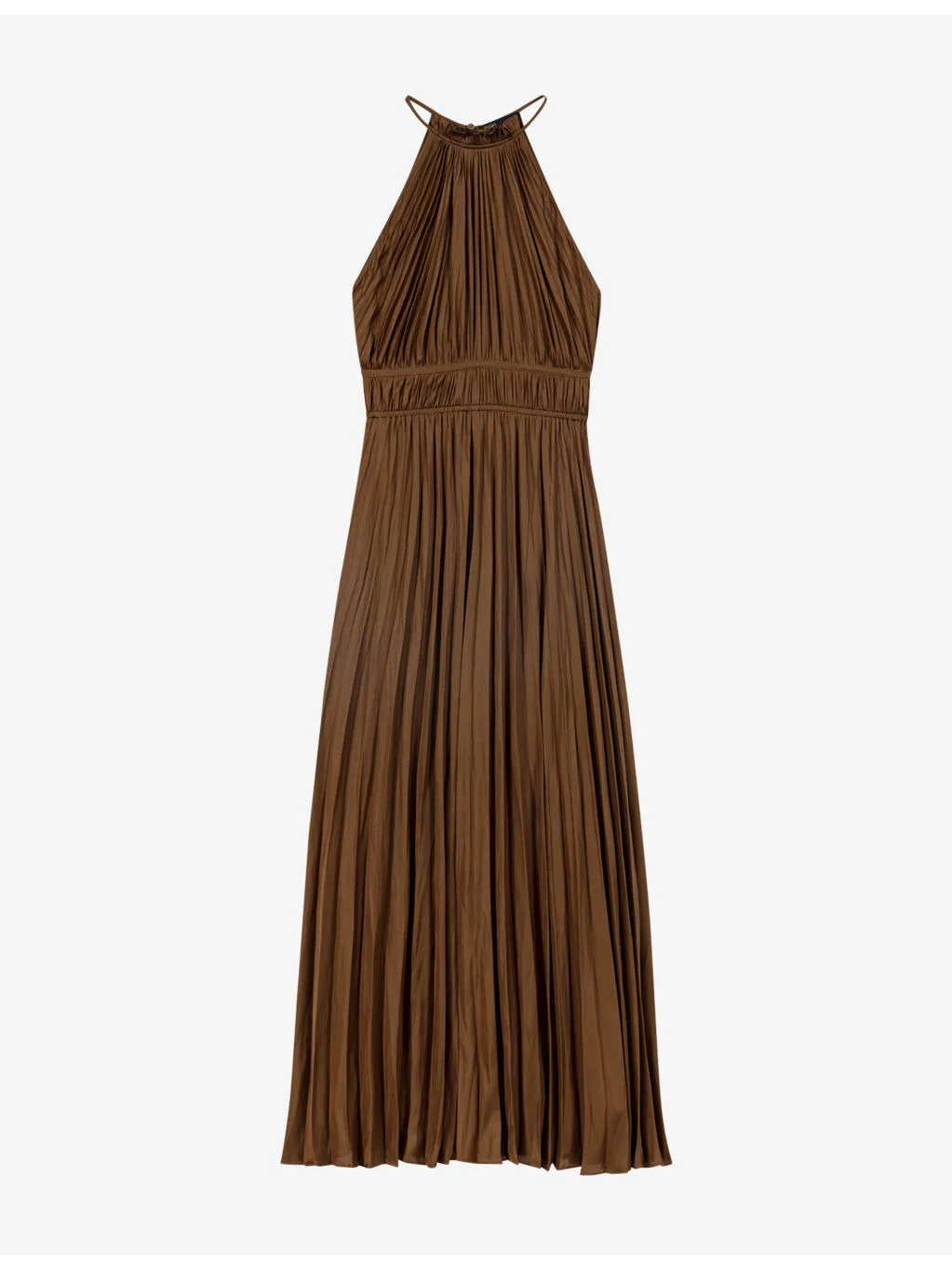 PRODUCT DETAILS - Maje woven maxi dress - 100% polyester - Self-tie fastening - Regular fit, high-neck, sleeveless, tie waist, all-over pleated texture - Hand wash - True to size - Model is 5ft 10in/1.78m and wears a size UK 8 - Lightweight, non-stretch Ref: R04612472