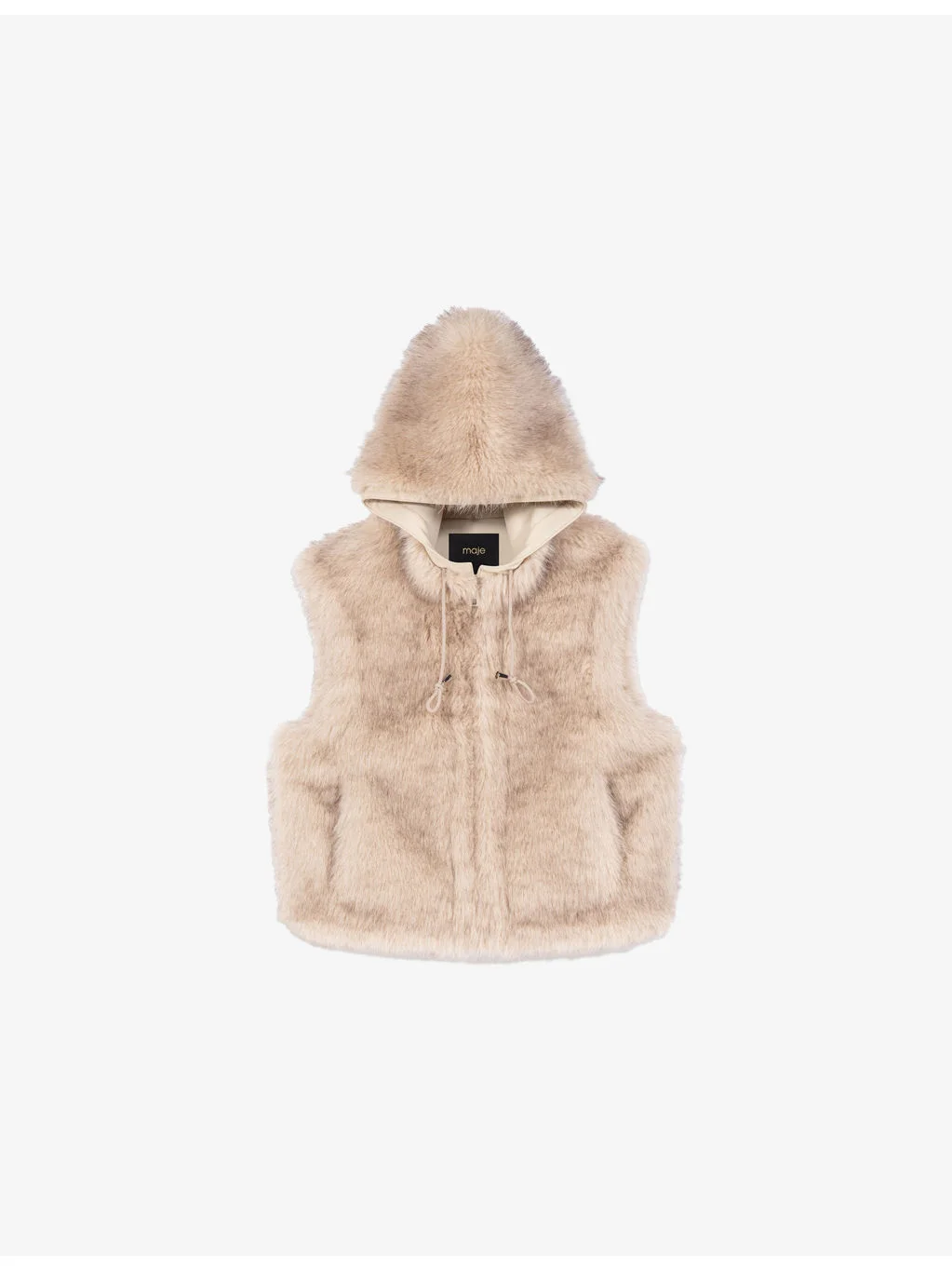 PRODUCT DETAILS - Maje faux-fur gilet - 100% polyurethane - Exposed zip fastening at front - Relaxed fit, hooded, sleeveless, two pockets at the side, textured finish - Dry clean - True to size - Midweight, non-stretch Ref: R04578906