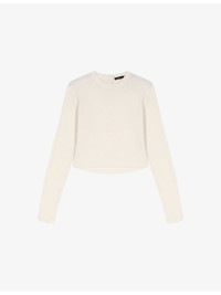 PRODUCT DETAILS - Maje wool jumper - 100% wool - Pulls on - Round neck, long sleeves, jewelled buttons at back neck, ribbed trims - Hand wash - True to size - Model is 5ft 9in/1.75m and wears a size UK 8 - Lightweight, slight stretch Ref: R04597447