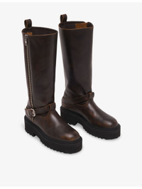 PRODUCT DETAILS - Maje leather biker boots - 100% leather - Adjustable buckle fastening - Round closed toe, buckle detail, pull tabs at the side - Specialist leather clean - Upper: 100% leather - Lining: 100% leather - Sole: 100% rubber Ref: R04514855