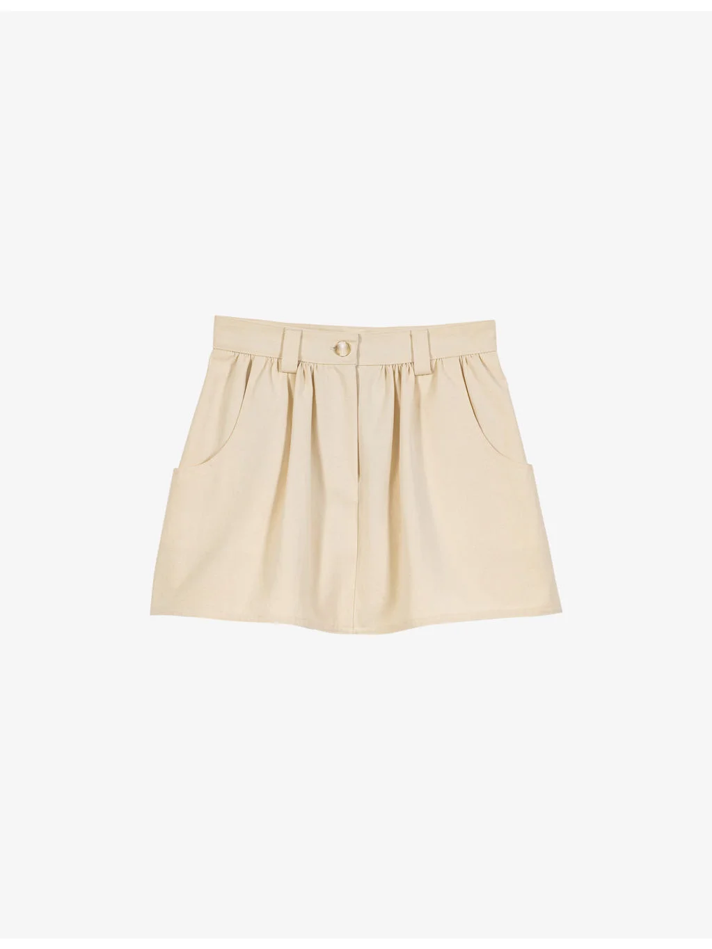 PRODUCT DETAILS - Maje cotton skort - 100% cotton - Button and zip-fly fastening - Regular fit, mid-rise, belt loops, side pockets, layered effect - Machine wash mild - True to size - Model is 5ft 9in/1.75m and wears a size UK 8 - Lightweight, non-stretch Ref: R04606214