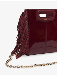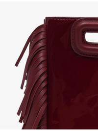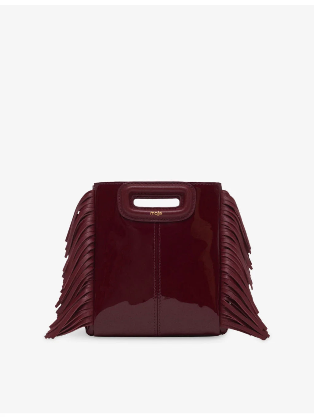 PRODUCT DETAILS - Maje patent-leather cross-body bag - 100% leather - Magnetic fastening - Double top handle, detachable cross-body strap, logo embossed at the front, fringed trims, one main compartment, patent finish - Height 17cm, width 15cm, depth 4cm - Specialist leather clean Ref: R04415722