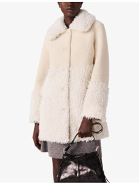 PRODUCT DETAILS - Maje faux-fur coat - 100% polyester - Exposed button fastening at front - Relaxed fit, wraparound collar, long sleeves, textured - Machine wash at 40°C - True to size - Model is 5ft 10in/1.78m and wears a size UK 8 - Midweight, non-stretch Ref: R04529200
