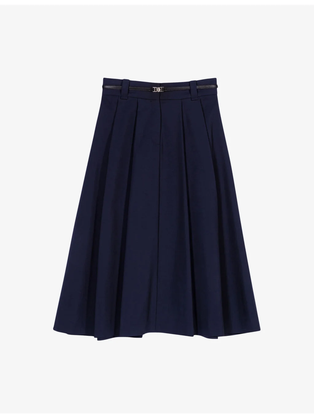 PRODUCT DETAILS - Maje stretch cotton-blend skirt - 50% cotton, 46% polyamide, 4% elastane - Adjustable buckle fastening - Regular fit, high rise, contrast waistband with thin logo belt, slightly flared silhouette - Dry clean - True to size - Model is 5ft 10in/1.78m and wears a size UK 8 - Midweight, slight-stretch Ref: R04516736