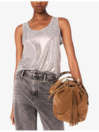 PRODUCT DETAILS - Maje stretch-knit vest top - 94% polyester, 6% elastane - Regular fit, scoop neck, sleeveless, all-over metallic lame finish - Machine wash at 30°C - True to size - Model is 5ft 10in/1.78m and wears a size UK 8 - Lightweight, slight stretch Ref: R04509752
