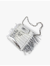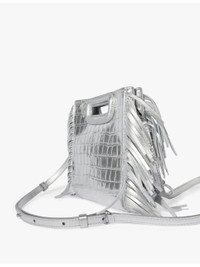 PRODUCT DETAILS - Maje leather cross-body bag - 100% leather - Magnetic fastening - Adjustable cross-body strap, double handle, logo embossed at the front, all-over croc embossed, fringing at the sides, all-over metallic finish - Height 17cm, width 14cm, depth 6cm - Specialist leather clean Ref: R04259135
