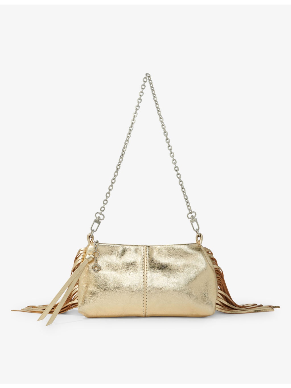 PRODUCT DETAILS - Maje leather clutch - 100% leather - Zip fastening - Chain strap, fringed trim, clover charm, fringed trims, one main compartment, gold-tone hardware - Height 11cm, width 22cm, depth 5cm - Specialist leather clean Ref: R04255888