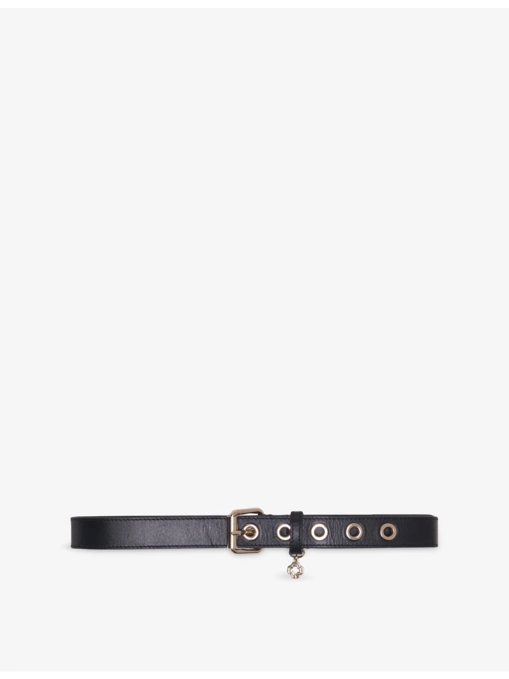 PRODUCT DETAILS - Maje leather belt - 100% leather - Adjustable buckle fastening - Rectangular buckle, Clover logo charm, oversized eyelets, gold-toned hardware - Width 2.8cm - Specialist leather clean Ref: R04578857
