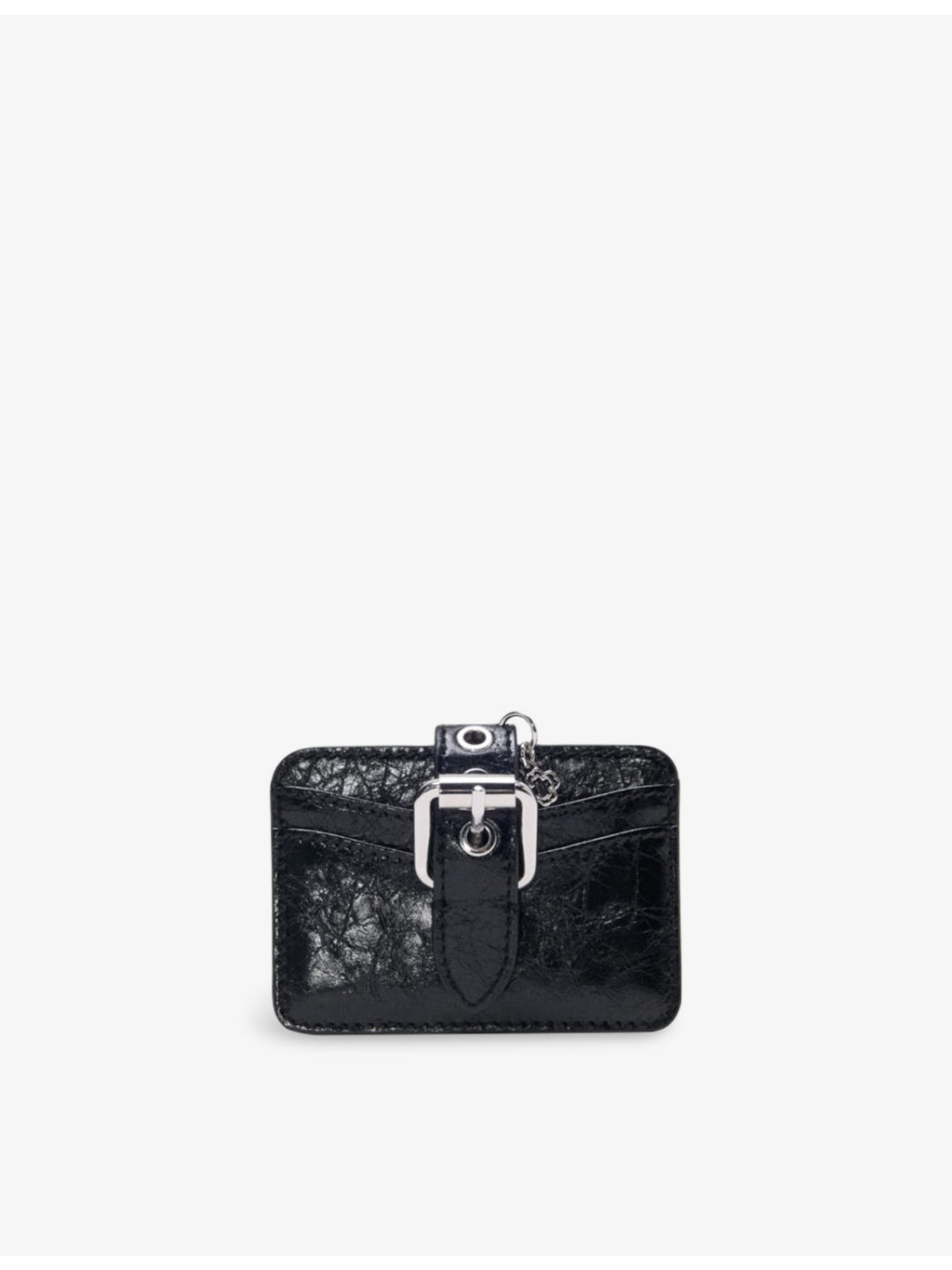 PRODUCT DETAILS - Maje leather card holder - 100% leather - Buckle fastening - Rectangular shape, buckle detail, three card slots, silver-toned hardware, worn-effect - Height 8.8cm, width 10.5cm - Specialist leather clean Ref: R04514787