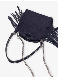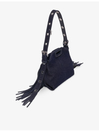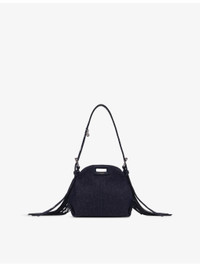 PRODUCT DETAILS - Maje cotton bag - 100% cotton - Magnetic fastening - Detachable eyelet strap with clover charm, one main compartment, logo embossed at the front, silver-tone hardware, fringing at the side - Height 19cm, width 16cm, depth 8cm - Specialist leather clean Ref: R04490316