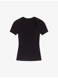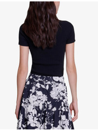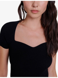 PRODUCT DETAILS - Maje woven sweater - 55% viscose, 43% polyamide, 2% elastane - Slips on - Sweetheart neck, short sleeves, ribbed construction - Hand wash Ref: R04255868
