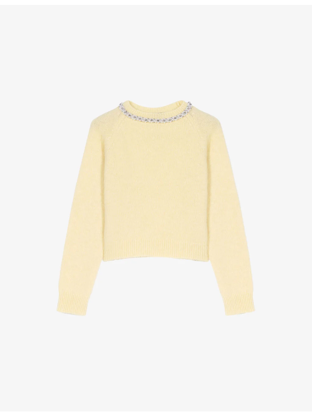 PRODUCT DETAILS - Maje knitted jumper - 53% polyamide, 47% alpaca - Regular fit, round-neck, detachable necklace embellishment, long sleeves, ribbed trims, fluffy finish - Hand wash - True to size - Midweight, slight stretch Ref: R04578899