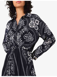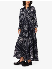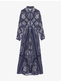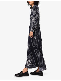 PRODUCT DETAILS - Maje woven dress - 100% viscose - Concealed button fastenings at front - Relaxed fit, collared, concealed button placket, long sleeves, all-over paisley print, flowing design - Machine wash at 30°C - True to size - Model is 5ft 9in/1.75m and wears a size UK 8 - Lightweight, non-stretch Ref: R04505431