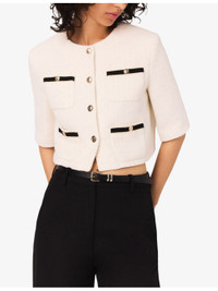 Patch-Pocket Button-Down Short Tweed Jacket