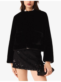 PRODUCT DETAILS - Maje faux-fur coat - 100% polyester - Hook-and-eye fastening - Regular fit, round neck, long sleeves, two patch pockets at the front - Machine wash mild - True to size - Model is 5ft 11in/1.80m and wears a size UK 8 - Heavyweight, non-stretch Ref: R04529197
