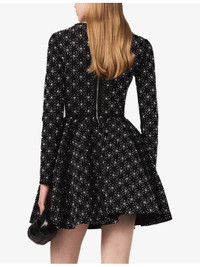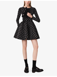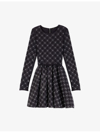 PRODUCT DETAILS - Maje stretch-knit dress - 82% polyamide ,18% elastane - Concealed fastening - Slim fit, round neck, long sleeves, fit and flare design, all-over pearl and rhinestone embellishment - Dry clean - True to size - Model is 5ft 10in/1.78m and wears a size UK 8 - Midweight, non-stretch Ref: R04548768
