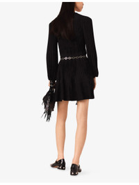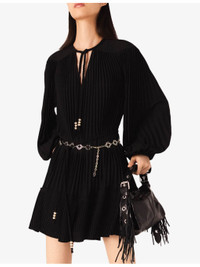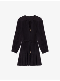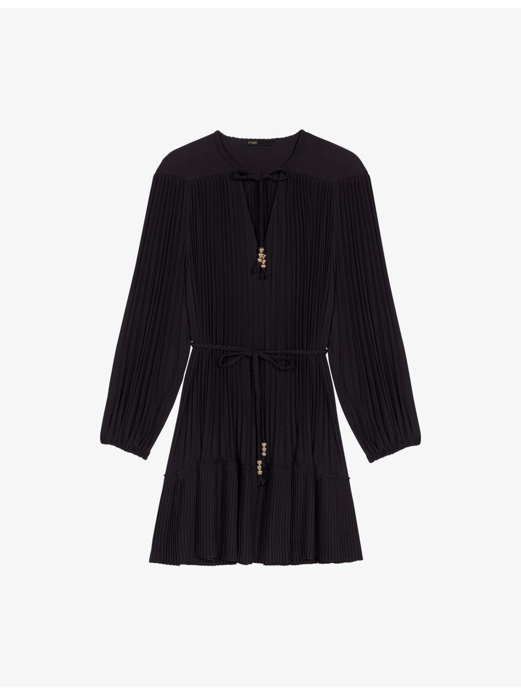 PRODUCT DETAILS - Maje woven dress - 100% polyester - Self-tie fastening - Relaxed fit, V-neck, bead embellished cords, long sleeves, pleated - Hand wash - True to size - Model is 5ft 10in/1.78m and wears a size UK 8 - Midweight, non-stretch Ref: R04514829