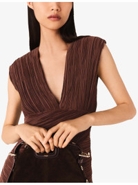 PRODUCT DETAILS - Maje woven dress - 100% polyester - Concealed zip fastening at side - Slim fit, V-neck, sleeveless, all-over pleating - Hand wash - True to size - Model is 5ft 11in/1.80m and wears a size UK 8 - Midweight, non-stretch Ref: R04532891
