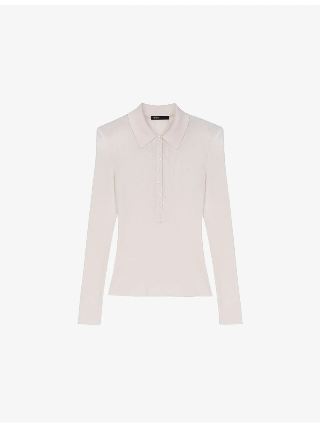 PRODUCT DETAILS - Maje wool and silk jumper - 72% wool, 28% silk - Button fastening - Regular fit, polo collar, long sleeves, ribbed texture - Hand wash - True to size - Lightweight, slight stretch Ref: R04578856