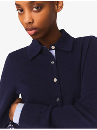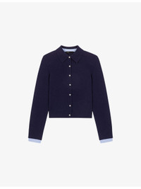 PRODUCT DETAILS - Maje wool and cashmere cardigan - 94% wool 6% cashmere - Button fastening - Polo-style, long sleeves, polo collar with a gingham shirt insert, removable at the cuffs, ribbed trims - Hand wash - True to size - Midweight, slight stretch Ref: R04597445