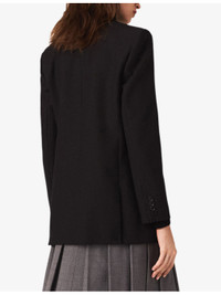 PRODUCT DETAILS - Maje stretch wool-blend blazer - 52% polyester, 26% wool, 18% viscose, 4% elastane - Exposed button fastening at front - Regular fit, peak lapels, removable brooch, long sleeves, two flap pockets at the side, double breasted design - Dry clean - True to size - Model is 5ft 9in/1.75m and wears a size UK 8 - Midweight, slight stretch Ref: R04529205