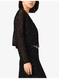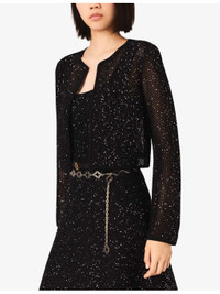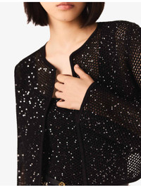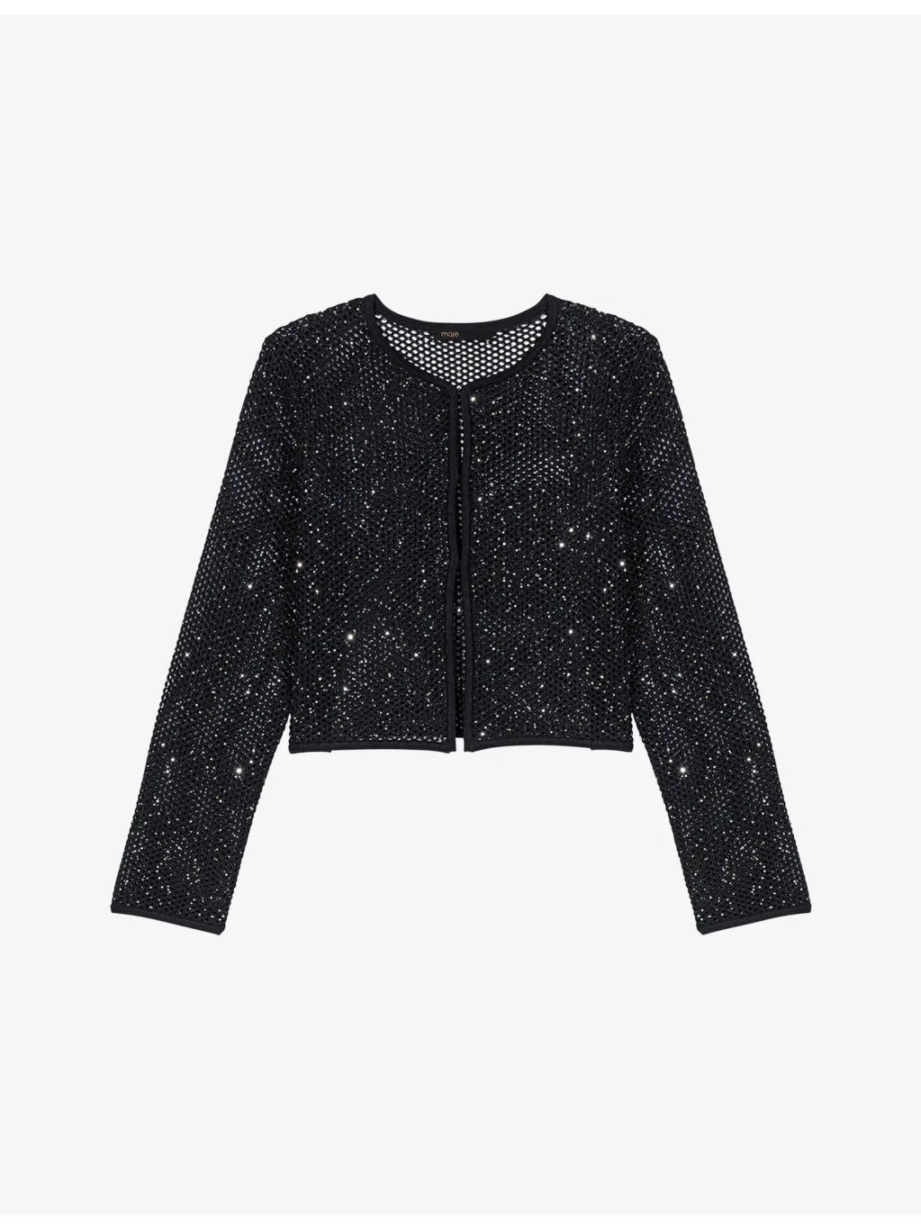 PRODUCT DETAILS - Maje knitted cardigan - 72% polyester, 18% viscose, 6% polyamide, 4% metalised fibres - Hook-and-eye fastening - Regular fit, round-neck, long sleeves, all-over rhinestone embellishment - Hand wash - True to size - Lightweight, slight stretch Ref: R04578897