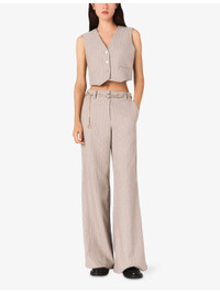 PRODUCT DETAILS - Maje stretch-woven trousers - 95% polyester, 3% elastane, 2% viscose - Button and zip-fly fastening - Regular fit, mid rise, belt loops, two pockets at the side, all-over rhinestone embellishment, wide leg - Hand wash - True to size - Model is 5ft 10in/1.78m and wears a size UK 8 - Midweight, slight stretch Ref: R04509758