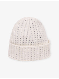 Rhinestone-Embellished Wool Beanie Hat