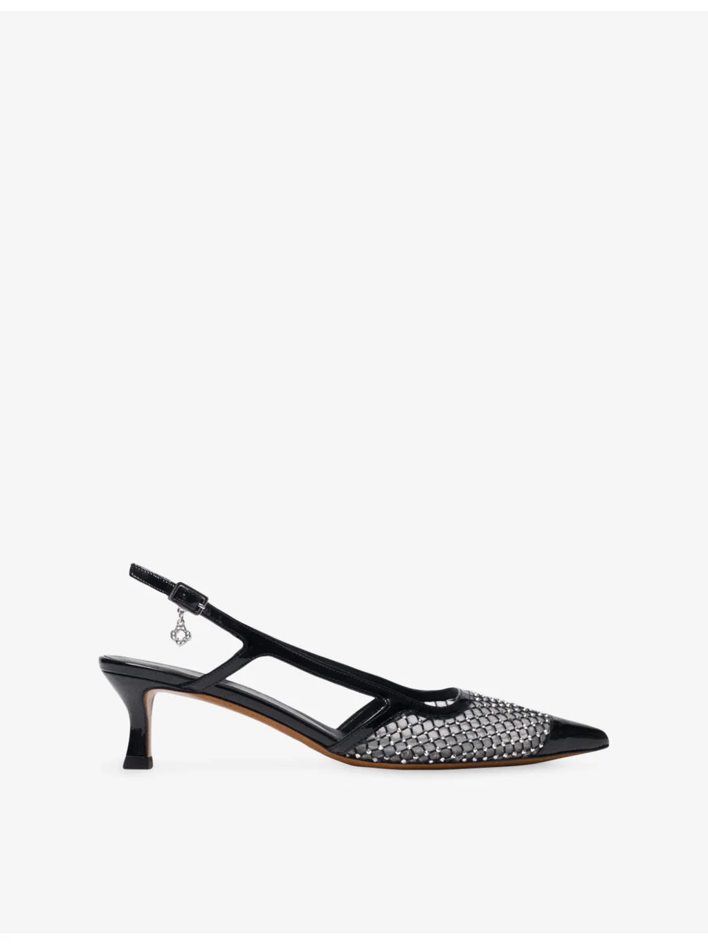 PRODUCT DETAILS - Maje mesh courts - 100% synthetic - Buckle fastening - Pointed toe, slingback strap, clover charm, rhinestone embellishment, low point heel - Heel height 2.75"" - Wipe with a clean, dry cloth - Upper: 100% synthetic - Lining: 100% synthetic - Sole: 100% synthetic Ref: R04548783