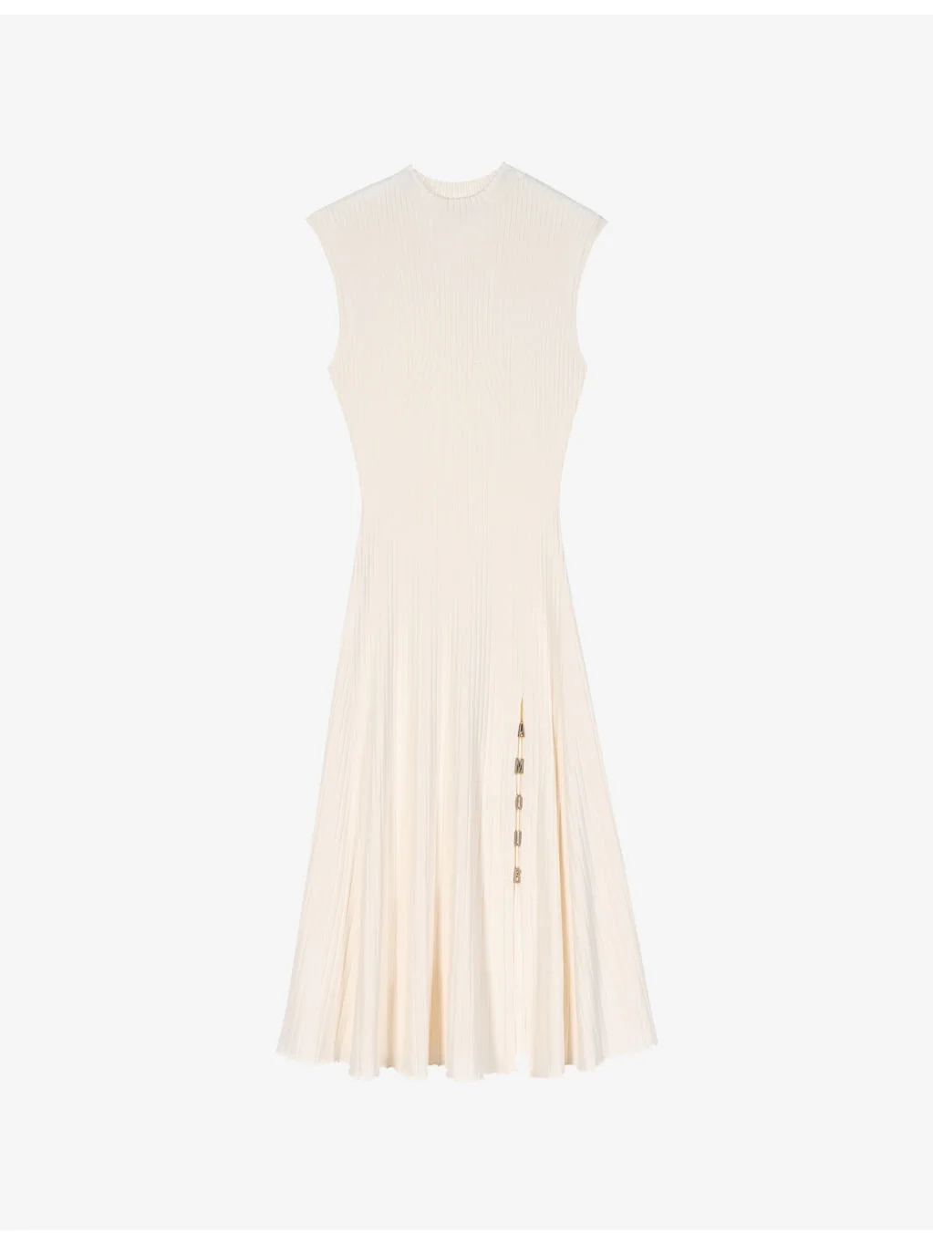 PRODUCT DETAILS - Maje stretch-knit dress - 56% viscose, 43% polyamide, 1% elastane - Slim fit, high neck, sleeveless, side split detail with gold-tone hardware, ribbed - Hand wash - True to size - Midweight, slight stretch Ref: R04578850