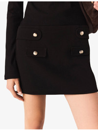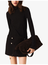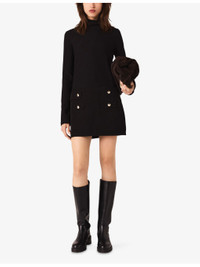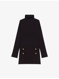PRODUCT DETAILS - Maje stretch-knit dress - 74% polyester, 22% viscose, 4% elastane - Concealed zip fastening - Slim fit, high neck, long sleeves, ribbed top, gold-tone buttons - Hand wash - True to size - Model is 5ft 9in/1.75m and wears a size UK 8 - Midweight, slight-stretch Ref: R04532827