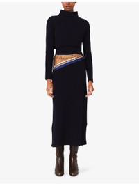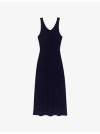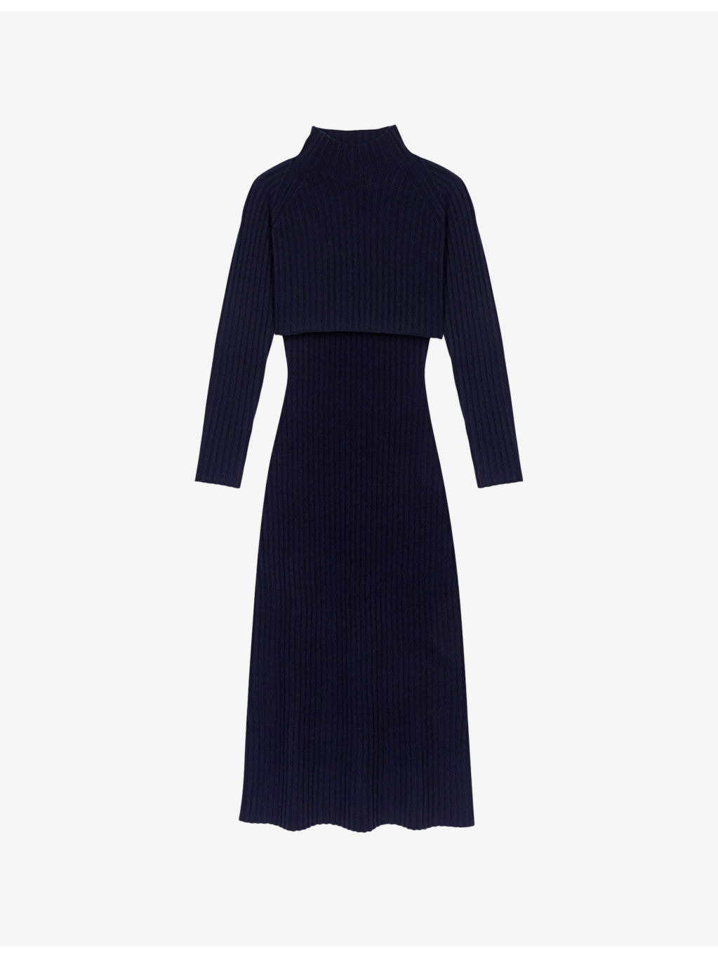 PRODUCT DETAILS - Maje knitted dress - 100% wool - Regular fit, removable high neck jumper, V-neck, all-over ribbed finish - Hand wash - True to size - Model is 5ft 10in/1.78m and wears a size UK 8 - Midweight, non-stretch Ref: R04514810