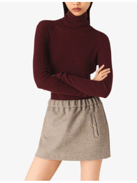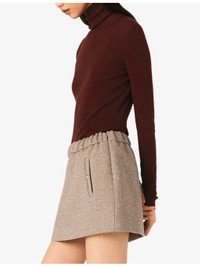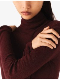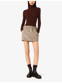 PRODUCT DETAILS - Maje wool and silk-blend jumper - 88% wool, 12% silk - Slim fit, round neck, long sleeves, signature clover tag at the back - Hand wash - True to size - Model is 5ft 11in/1.80m and wears a size UK 8 - Midweight, non-stretch Ref: R04514809